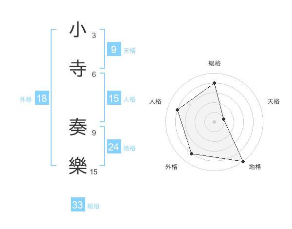 小寺 奏樂さんを姓名の画数から五運を鑑定