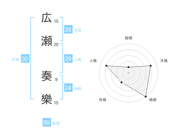 広瀬 奏樂さんを姓名の画数から五運を鑑定