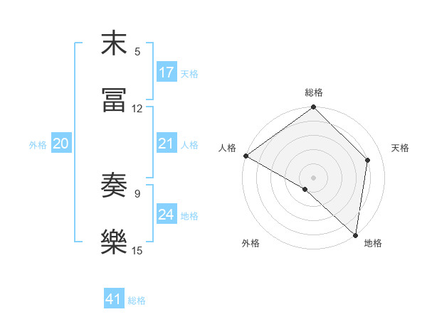末冨 奏樂さんを姓名の画数から五運を鑑定