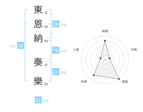 東恩納 奏樂さんを姓名の画数から五運を鑑定