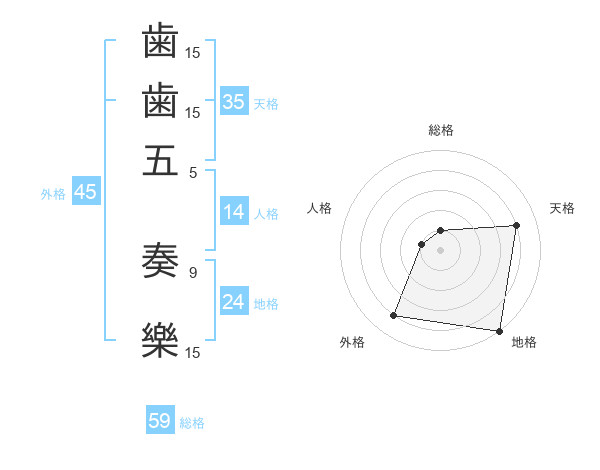 歯歯五 奏樂さんの外格は45画の4点!