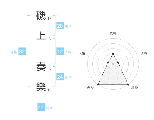 磯上 奏樂さんを姓名の画数から五運を鑑定