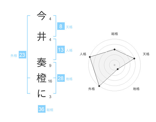 今井 奏橙にさんの天格は8画の4点!