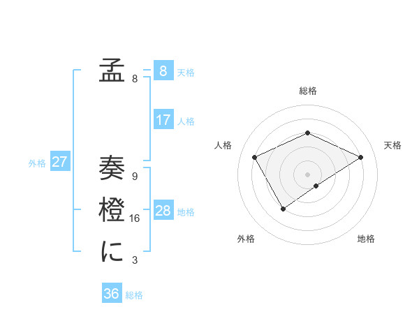 孟 奏橙にさんの外格は27画の3点!