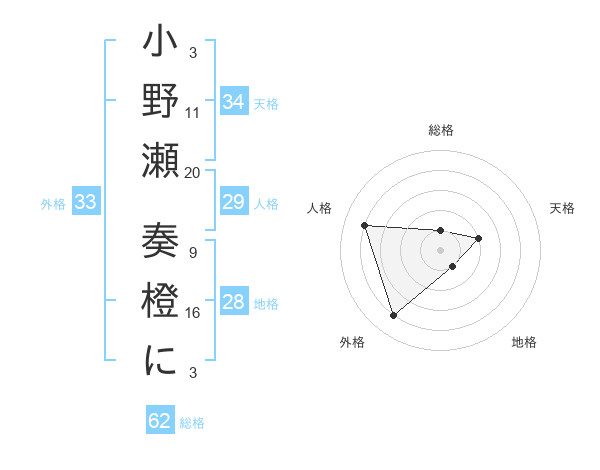 小野瀬 奏橙にさんを姓名の画数から五運を鑑定