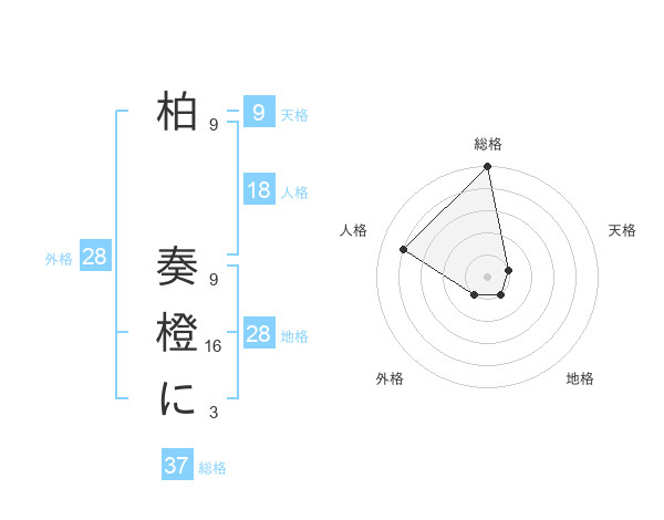 柏 奏橙にさんを姓名の画数から五運を鑑定