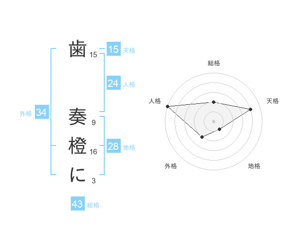 歯 奏橙にさんを姓名の画数から五運を鑑定