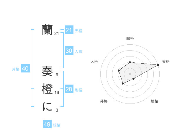 蘭 奏橙にさんの総格は49画の2点!