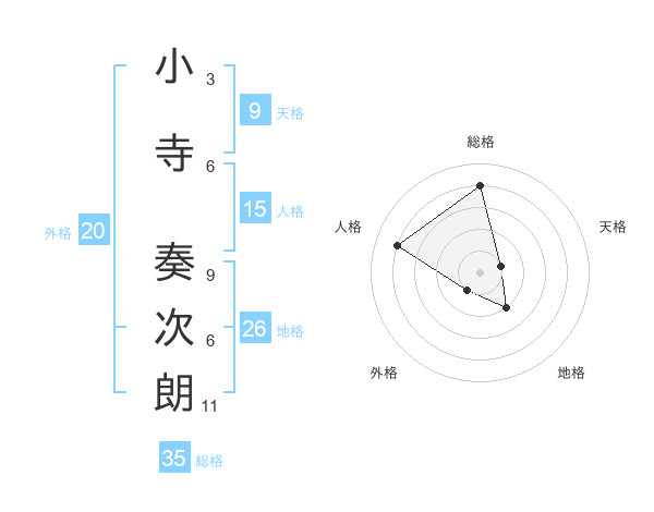 小寺 奏次朗さんを姓名の画数から五運を鑑定