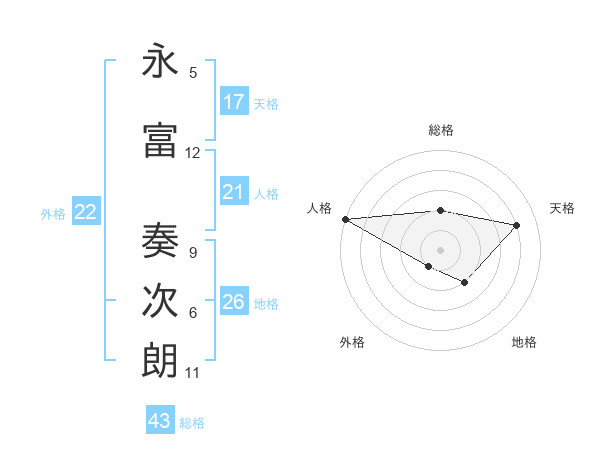 永富 奏次朗さんを姓名の画数から五運を鑑定