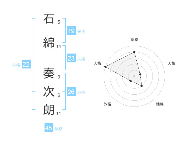 石綿 奏次朗さんを姓名の画数から五運を鑑定