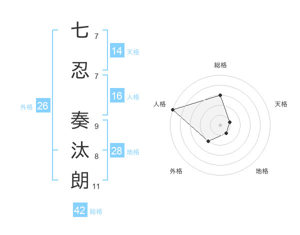 七忍 奏汰朗さんの地格は28画の1点!