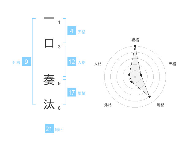 一口 奏汰さんの総格は21画の5点!