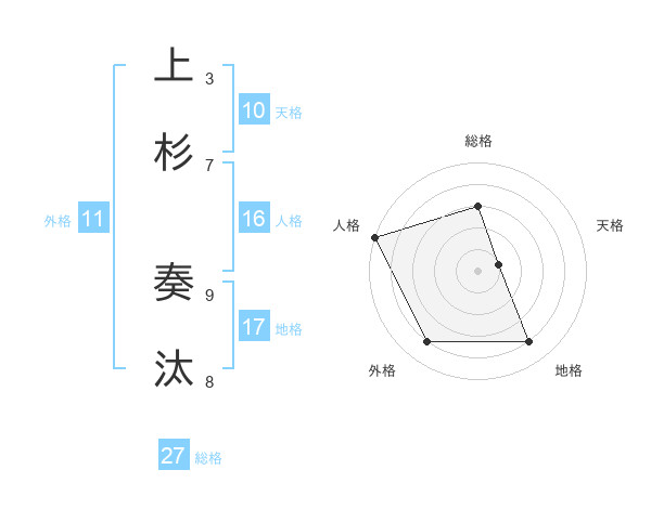 上杉 奏汰さんを姓名の画数から五運を鑑定