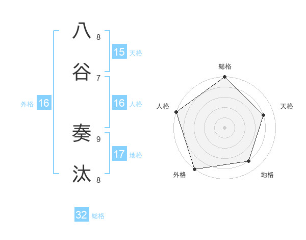 八谷 奏汰さんを姓名の画数から五運を鑑定