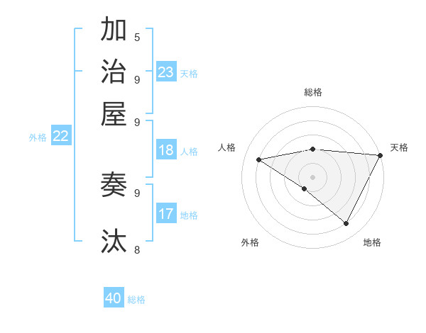加治屋 奏汰さんを姓名の画数から五運を鑑定