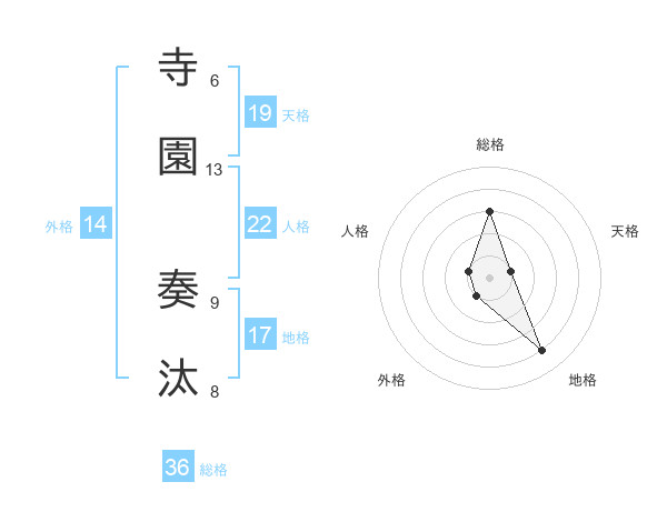 寺園 奏汰さんの総格は36画の3点!