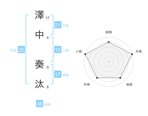澤中 奏汰さんを姓名の画数から五運を鑑定