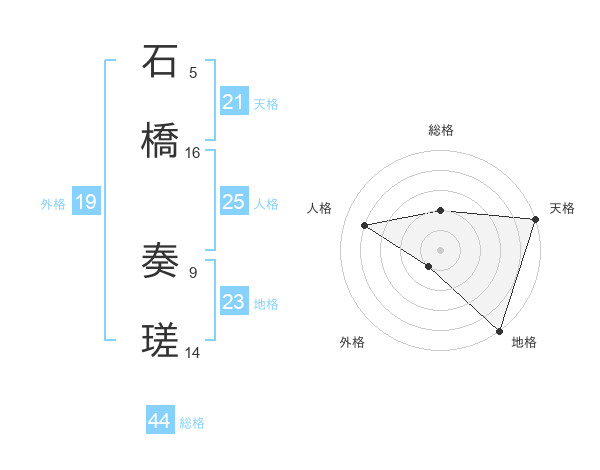 石橋 奏瑳さんの総格は44画の2点!