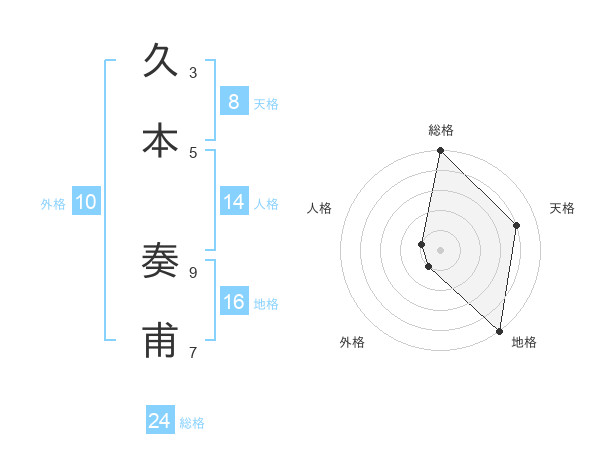 久本 奏甫さんの総格は24画の5点!