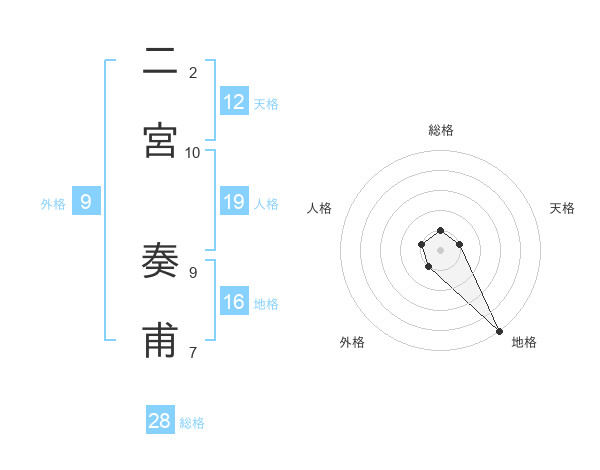 二宮 奏甫さんの地格は16画の5点!