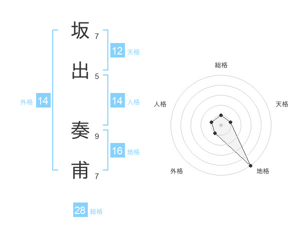 坂出 奏甫さんの総格は28画の1点!