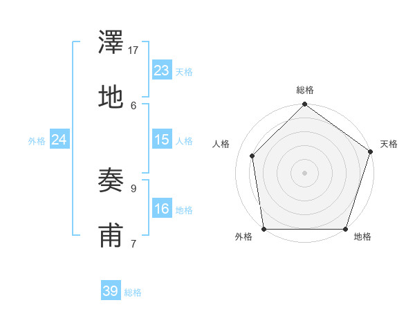 澤地 奏甫さんの総格は39画の5点!