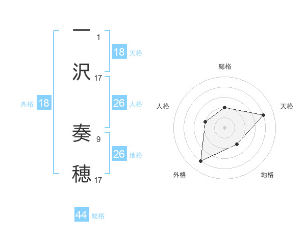 一沢 奏穂さんの総格は44画の2点!