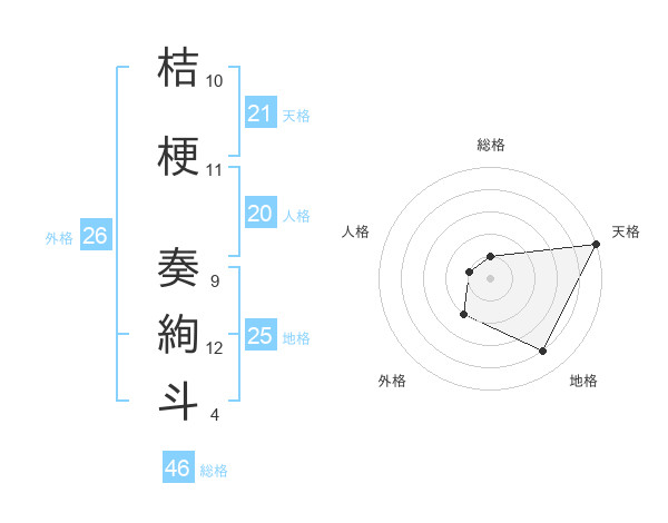 桔梗 奏絢斗さんの天格は21画の5点!