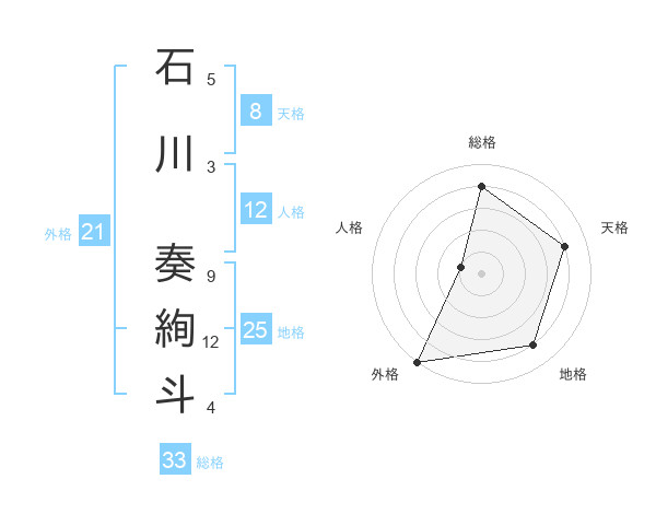 石川 奏絢斗さんの総格は33画の4点!