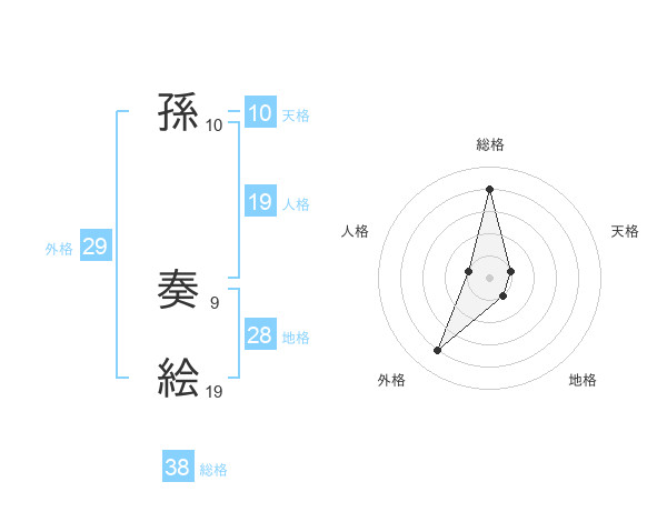 孫 奏絵さんの総格は38画の4点!