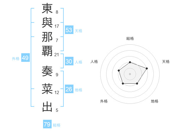 東與那覇 奏菜出さんの総格は79画の2点!