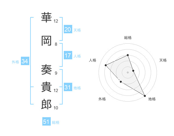 華岡 奏貴郎さんを姓名の画数から五運を鑑定