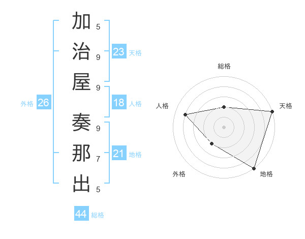 加治屋 奏那出さんを姓名の画数から五運を鑑定