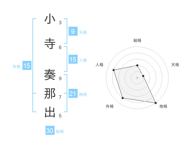 小寺 奏那出さんの人格は15画の4点
