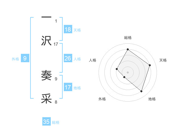 一沢 奏采さんを姓名の画数から五運を鑑定