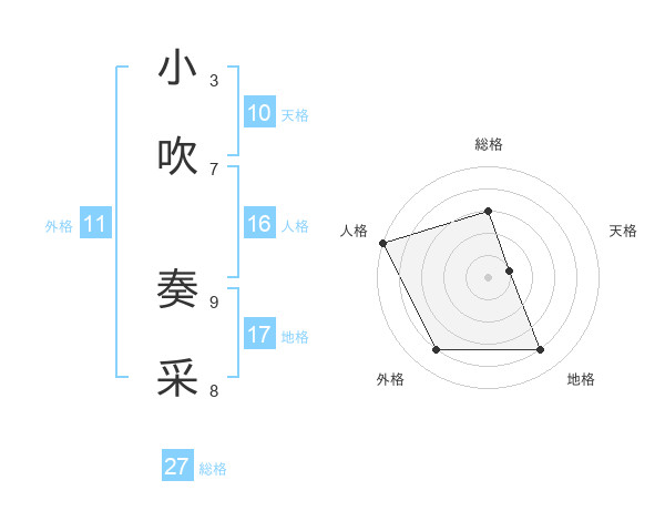 小吹 奏采さんを姓名の画数から五運を鑑定