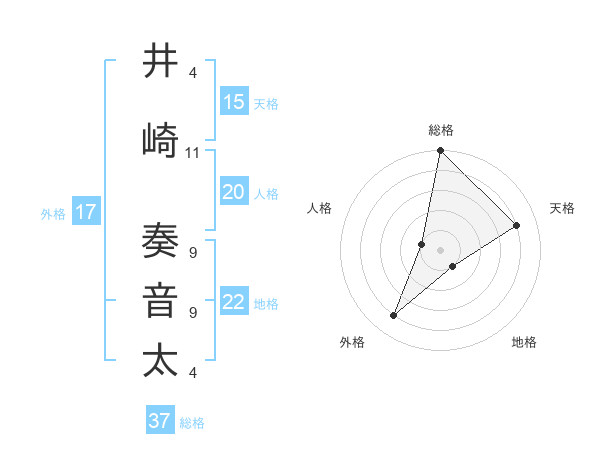井崎 奏音太さんの総格は37画の5点!