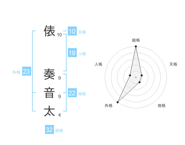 俵 奏音太さんを姓名の画数から五運を鑑定