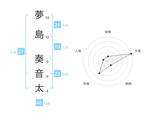 夢島 奏音太さんを姓名の画数から五運を鑑定