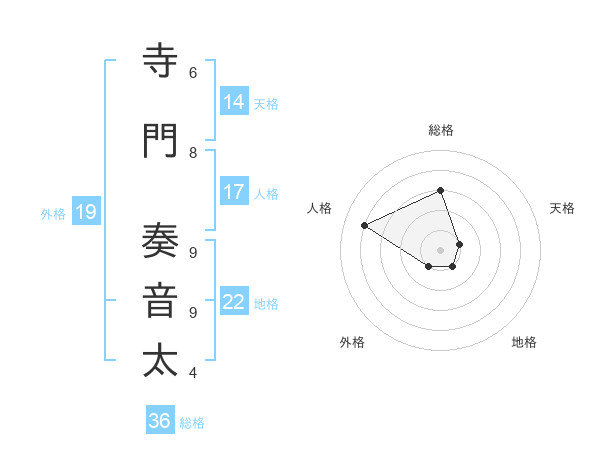 寺門 奏音太さんを姓名の画数から五運を鑑定