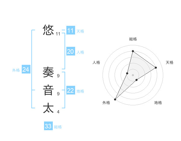 悠 奏音太さんを姓名の画数から五運を鑑定