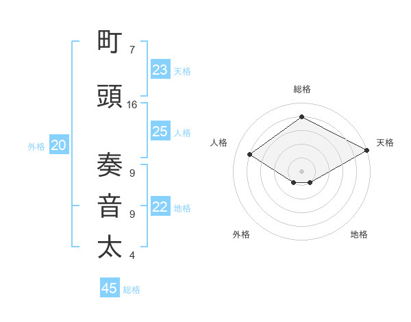 町頭 奏音太さんを姓名の画数から五運を鑑定