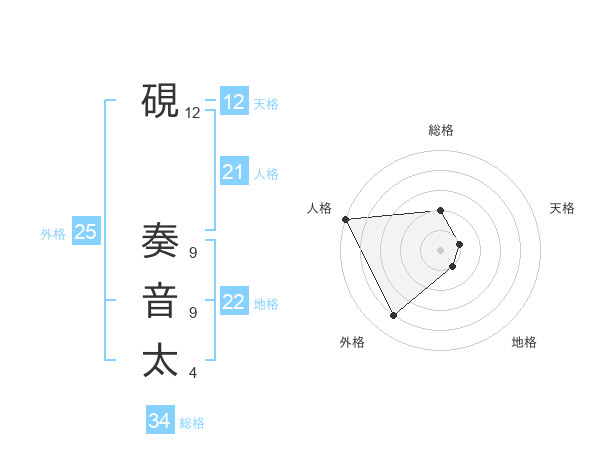 硯 奏音太さんの外格は25画の4点!