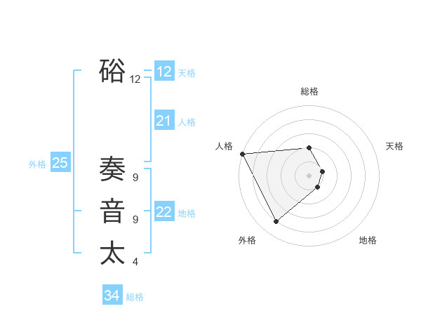 硲 奏音太さんの総格は34画の2点!