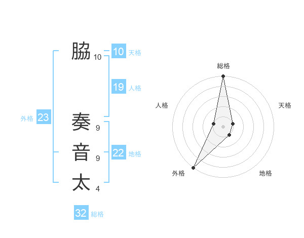 脇 奏音太さんを姓名の画数から五運を鑑定