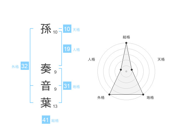 孫 奏音葉さんの総格は41画の5点!