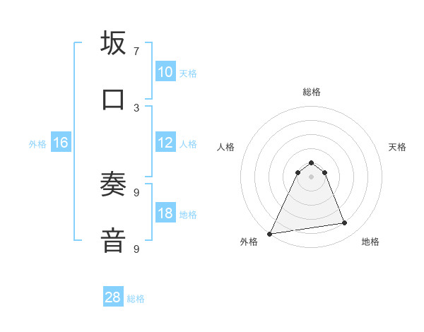 坂口 奏音さんの総格は28画の1点!
