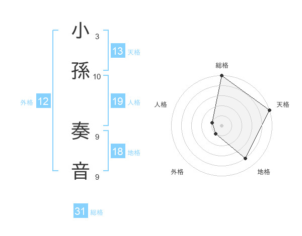 小孫 奏音さんの天格は13画の5点!