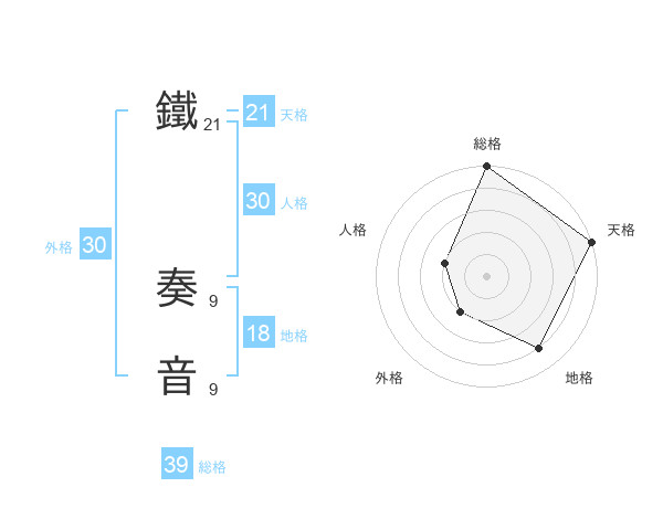 鐵 奏音さんの総格は39画の5点!